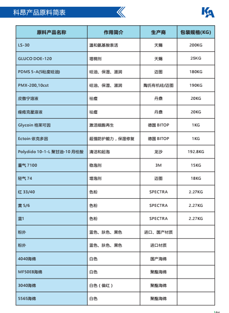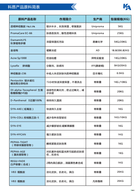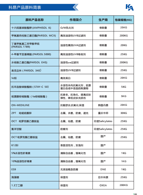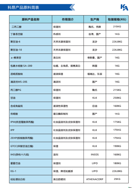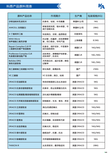 广州科昂公司原料目录