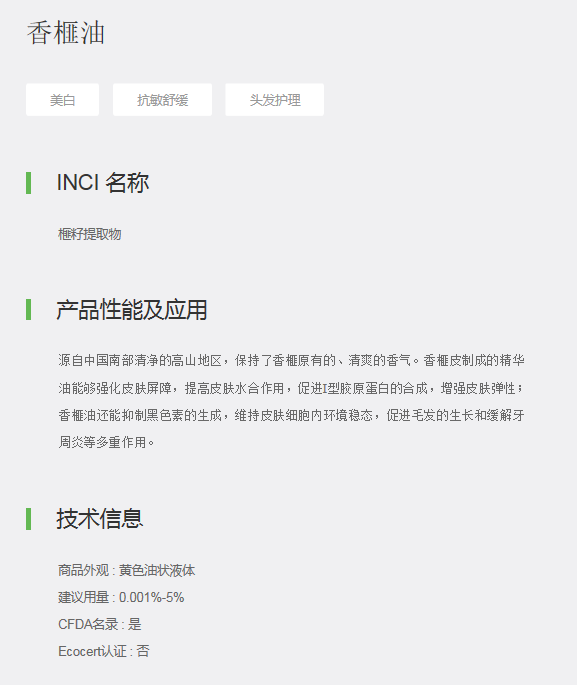 源自中国南部清净的高山地区,保持了香榧原有的、清爽的香气。香榧皮制成的精华油能够强化皮肤屏障,提高皮肤水合作用,促进I型胶原蛋白的合成,增强皮肤弹性;香榧油还能抑制黑色素的生成,维持皮肤细胞内环境稳态,促进毛发的生长和缓解牙周炎等多重作用。