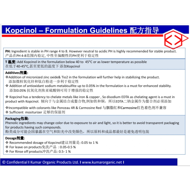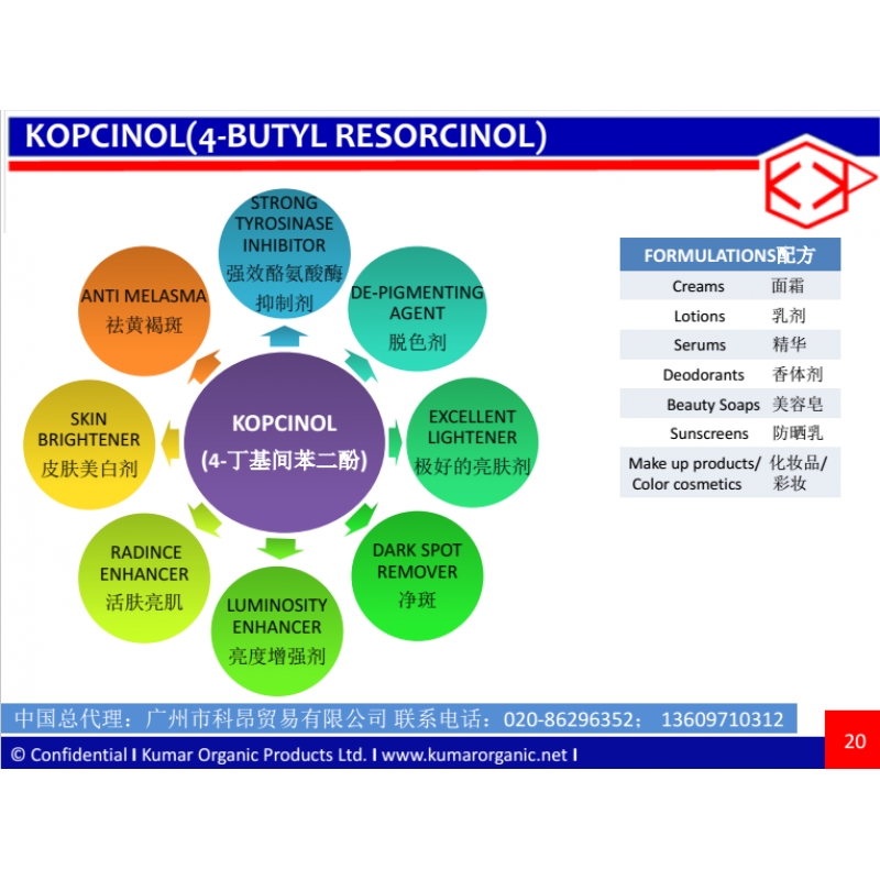 产品描述:Kopcinol 是一款非常有效的皮肤提亮剂;
