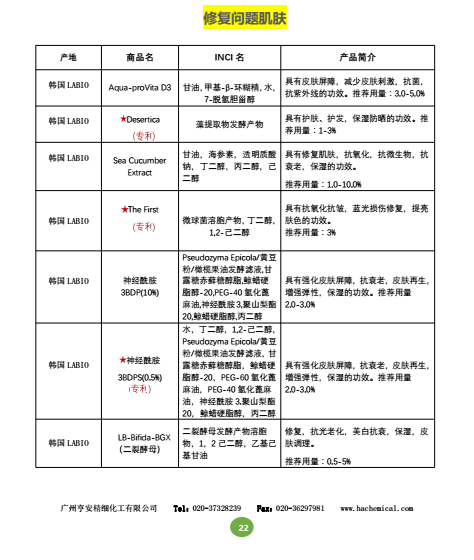广州亨安,专注化妆品防腐剂剂和活性物。